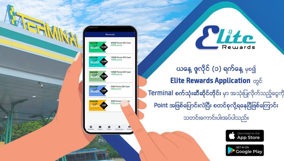 ယနေ့ ဇူလိုင် (၁) ရက်နေ့မှစ၍ Application တွင် Terminal စက်သုံးဆီဆိုင်တိုင်းမှာ အသုံးပြုလိုက်သည့်ငွေကို Point အဖြစ်ပြောင်းလဲပြီး စတင်စုလို့ရနေပြီဖြစ်ကြောင်း သတင်းကောင်းပါးအပ်ပါသည်။